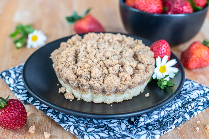 These Mini New York-Style Crumb Cakes feature light, tender vanilla cake topped with a generous layer of cinnamon-brown sugar topping.